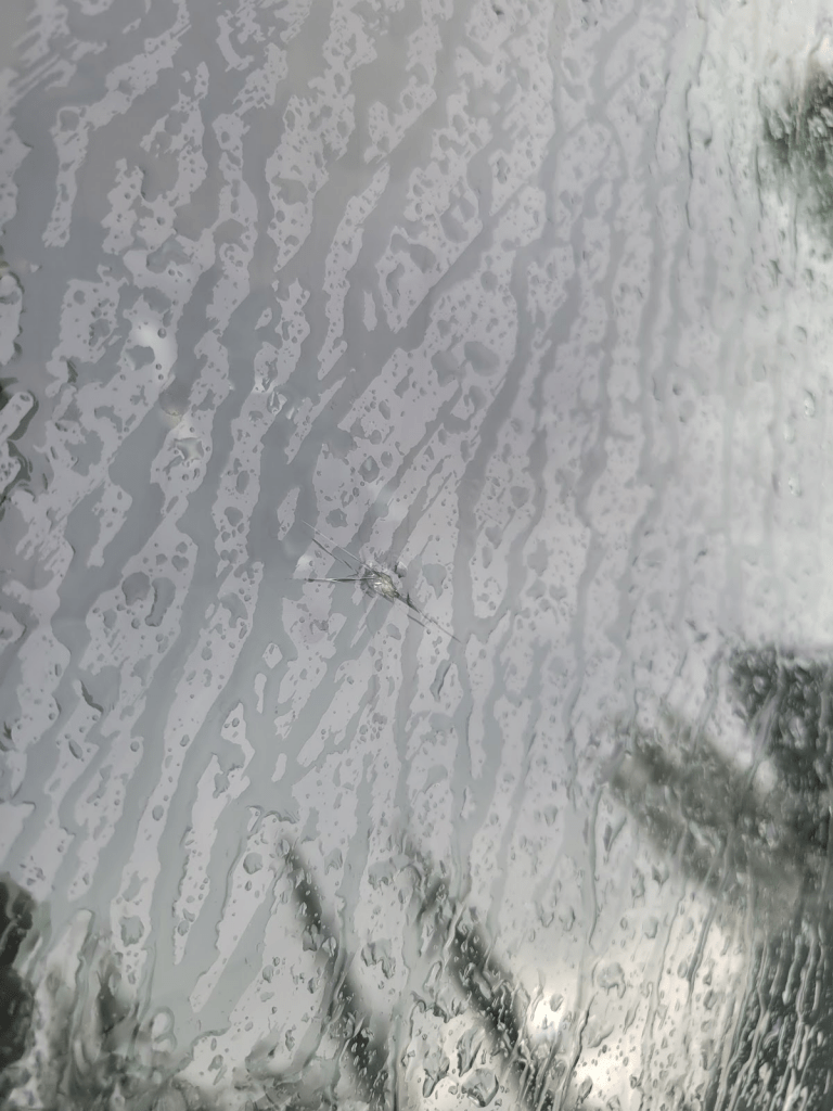 That Saturday was just bad luck. Not only I had to book somewhere unplanned for an extra night and constantly having to get up at night to check weather conditions, but also I somehow had my windshield cracked. My tire resulted in a leak after parking at the hotel too.