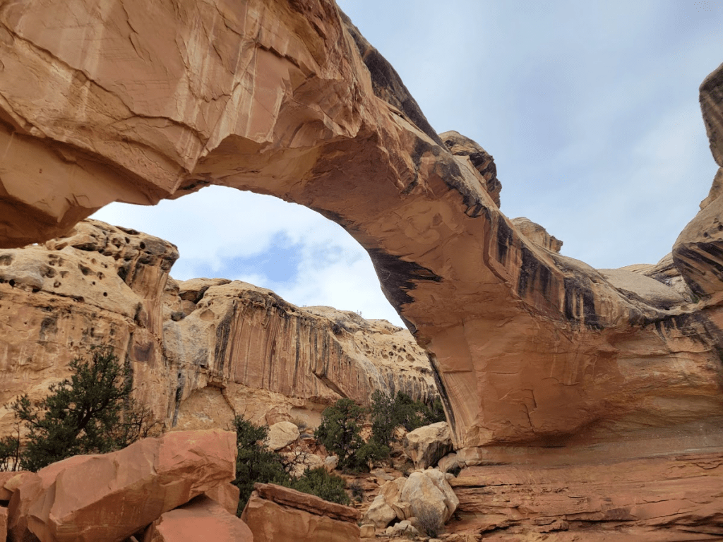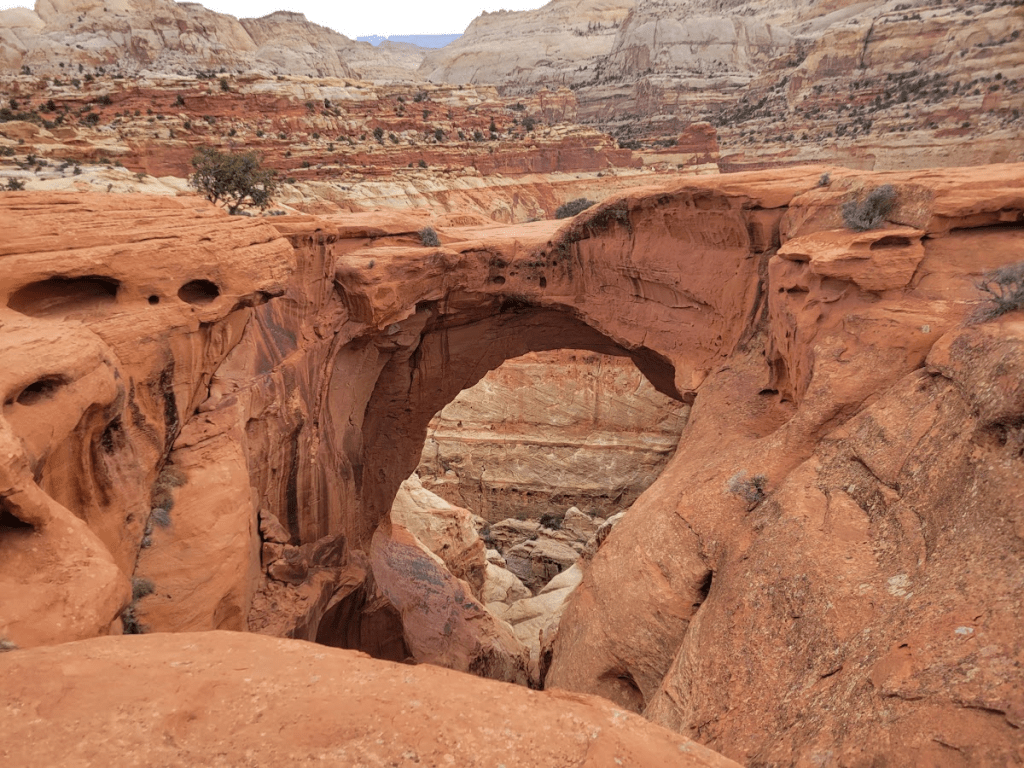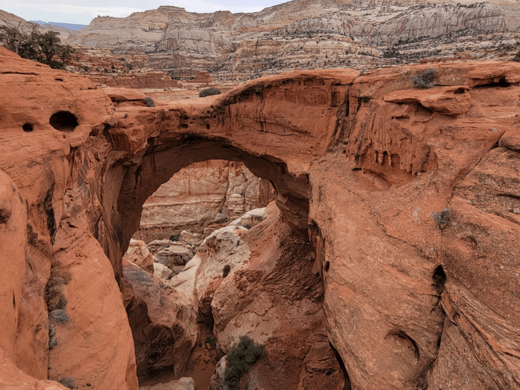 | Cassidy Arch | 1.7 mi (2.8 km) | 670 ft (204 m) | Strenuous | Natural arch, slickrock, canyon views |