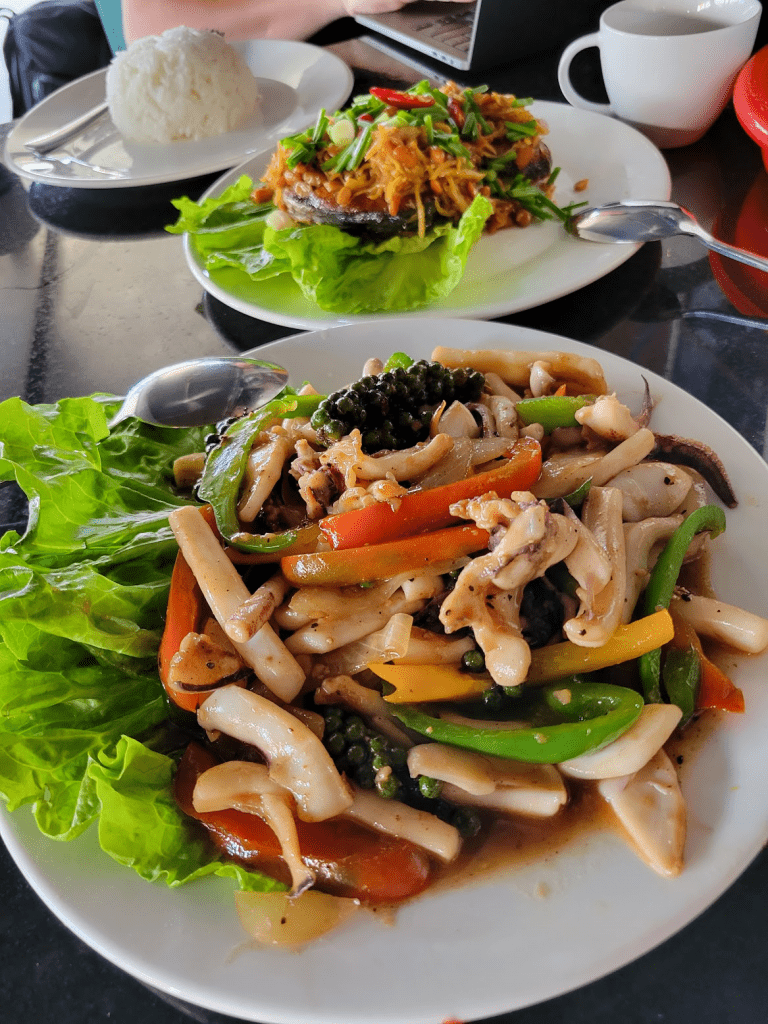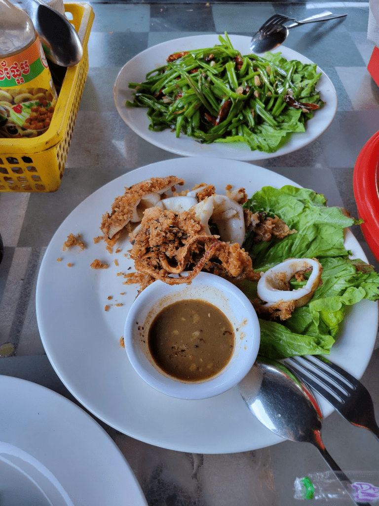 We found a local beach resort for some egg omelets. (54,000 / 3 Riels)