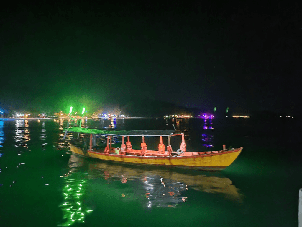 After dunking in the water for a bit, we were ready for our evening boat ride ($4pp) to see the plankton. – it’s amazing really to see in person, impossible to capture in camera unfortunately
