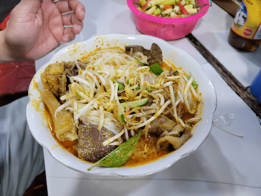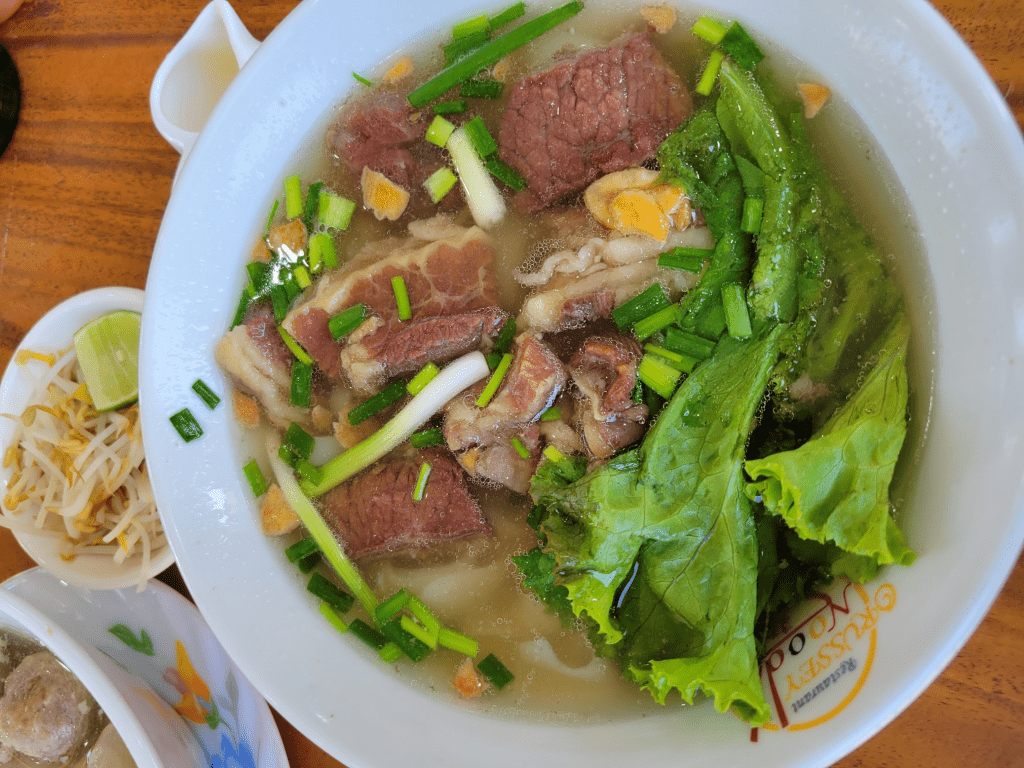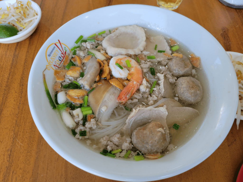 The noodles really good, though a bit fancier and pricer to my like (15,000 Riels plus coffee 10,000 I think)