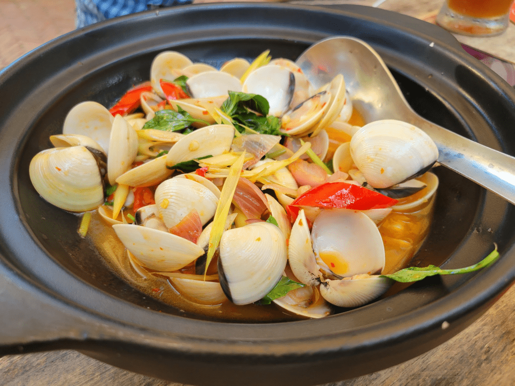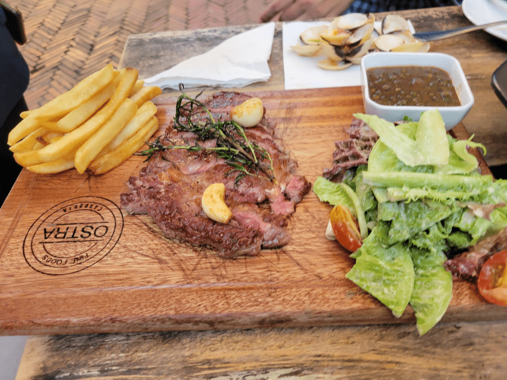 After about 45min, we arrived on the island. We were starving, so after checked into our hotel ($55/3) and started our feast.